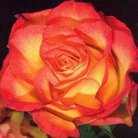 Цветки этого сорта розы отличаются ярким, насыщенным огненным оттенком, который со временем приобретает красные края и желтую сердцевину. Цветки умеренно-махровые, состоящие из 17-25 лепестков, имеют чашевидную форму. В одном соцветии может быть от 5 до 7 цветков. Листва темно-зеленая, глянцевая. Цветение повторное, что позволяет наслаждаться красотой розы несколько раз за сезон.